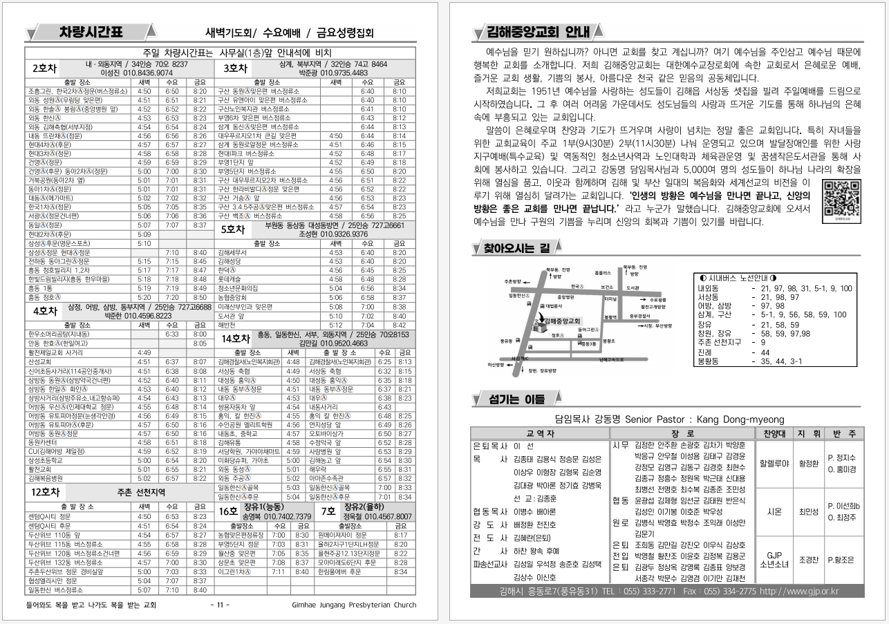 교회차량 시간표