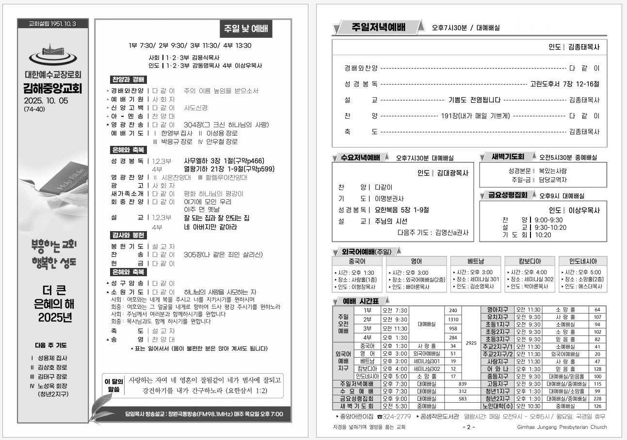 교회차량 시간표
